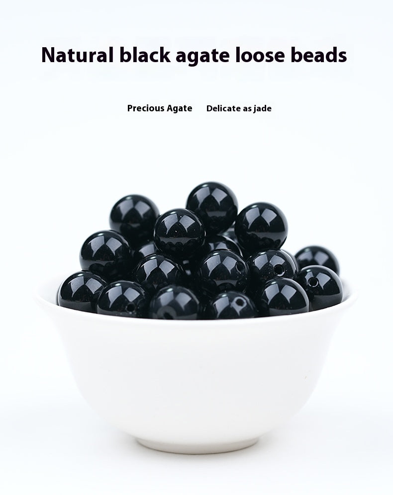 黑玛瑙珠,均匀深邃的黑色调,展现水元素宁静而神秘的力量。其天然纹路主要产自印度和巴西,在风水学中被运用,可平衡情绪、稳定心智,带来内心的平静与安宁。