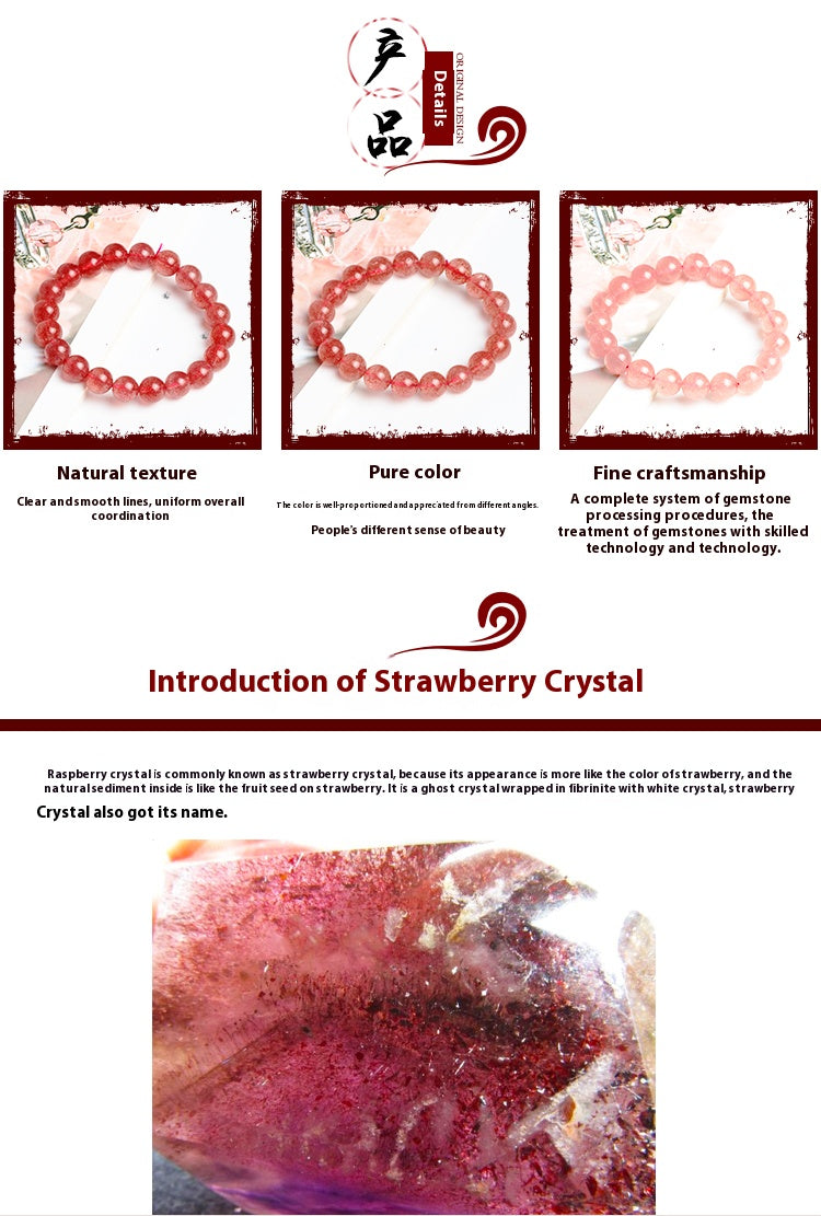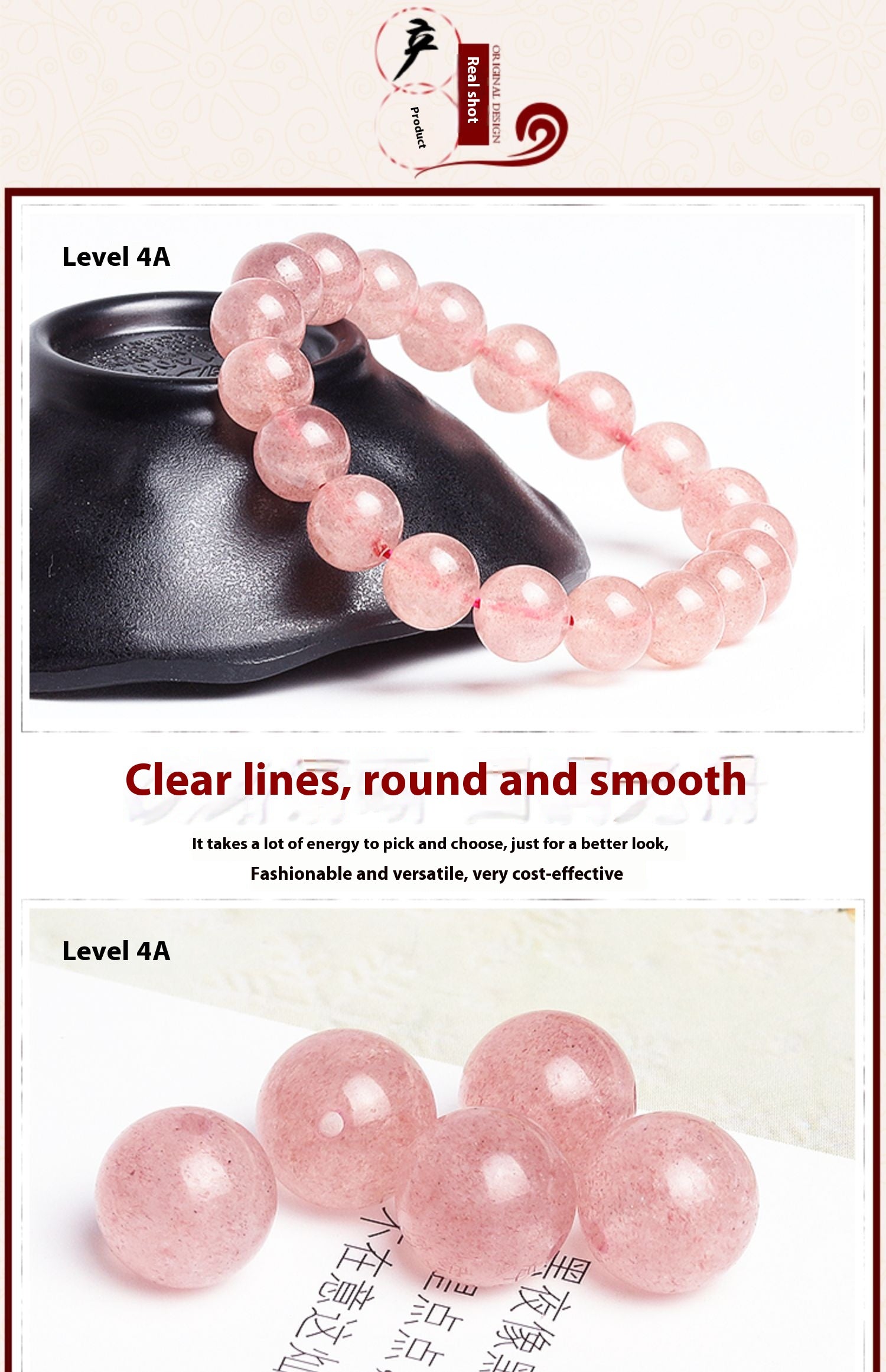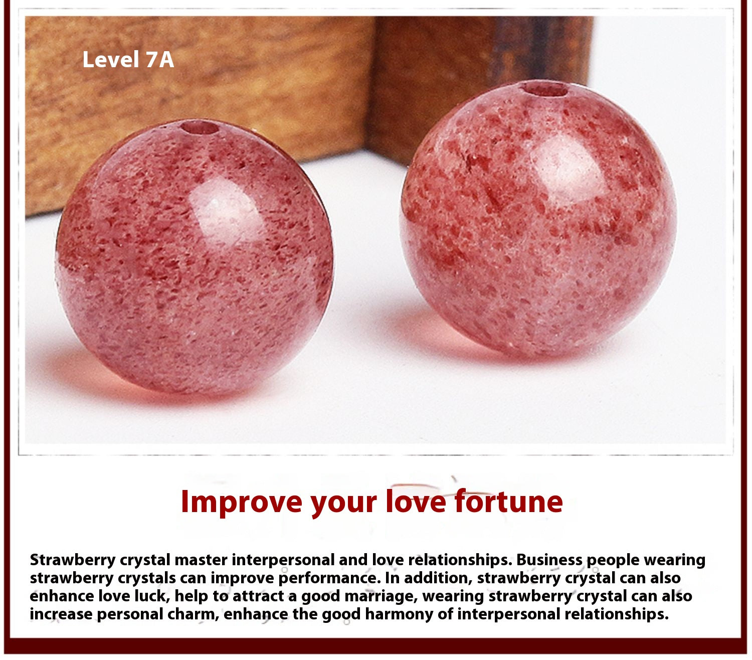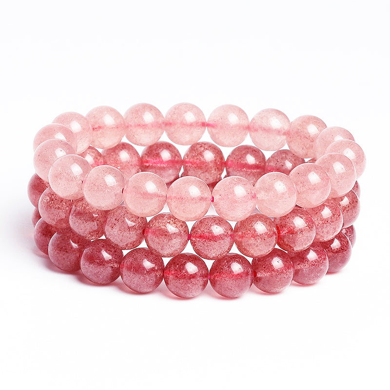 “Strawberry Quartz has that adorable pinkish-red color, kind of like fresh berries in summertime. I’ve heard it helps ease stress and spark little bursts of joy. Honestly, just looking at it makes me smile—it’s like carrying a sweet treat wherever I go!”